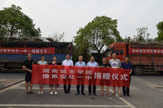 捐赠仪式上,我校为安化县第一中学捐赠了225张8人座不锈钢餐,价值约28万余元。