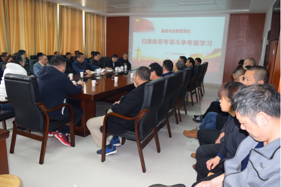 4月4日下午,基建与后勤管理处在二办公楼420会议室召开了扫黑除恶专项斗争专题学习会。全处职工及托管公司有关负责人参加,会议由钟雪飞副处长(主持工作)主持。