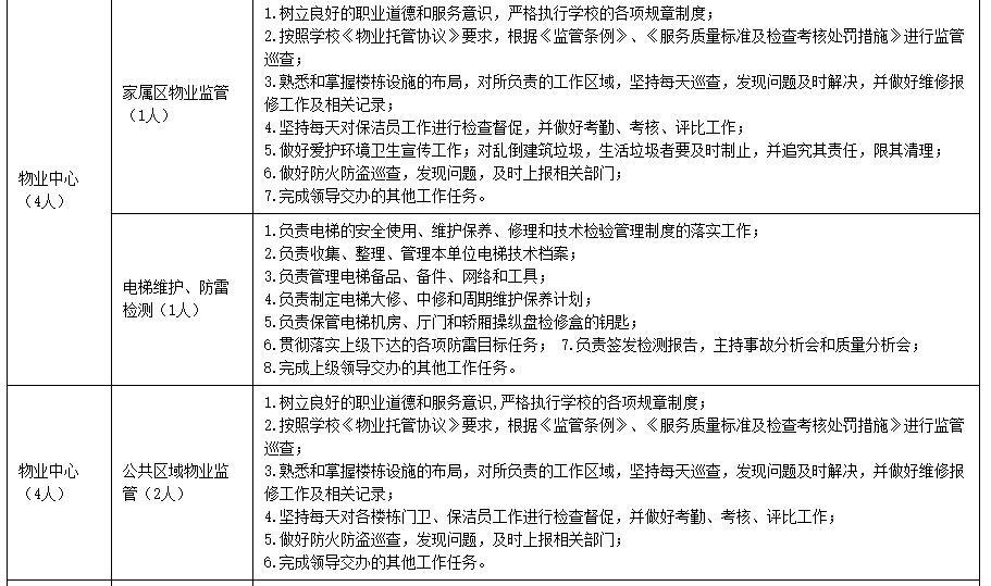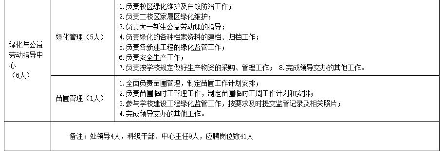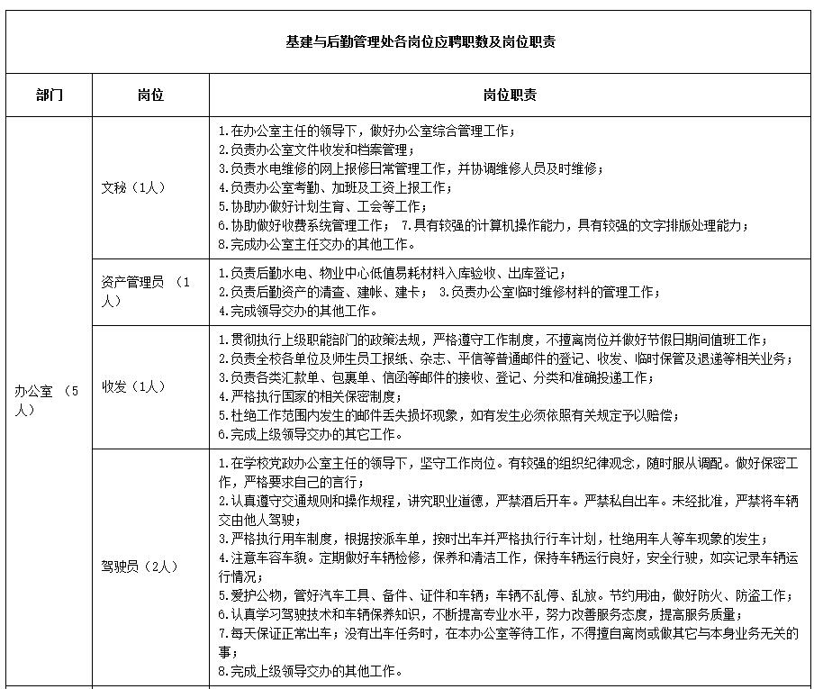 基建与后勤管理处各岗位应聘职数及岗位职责表