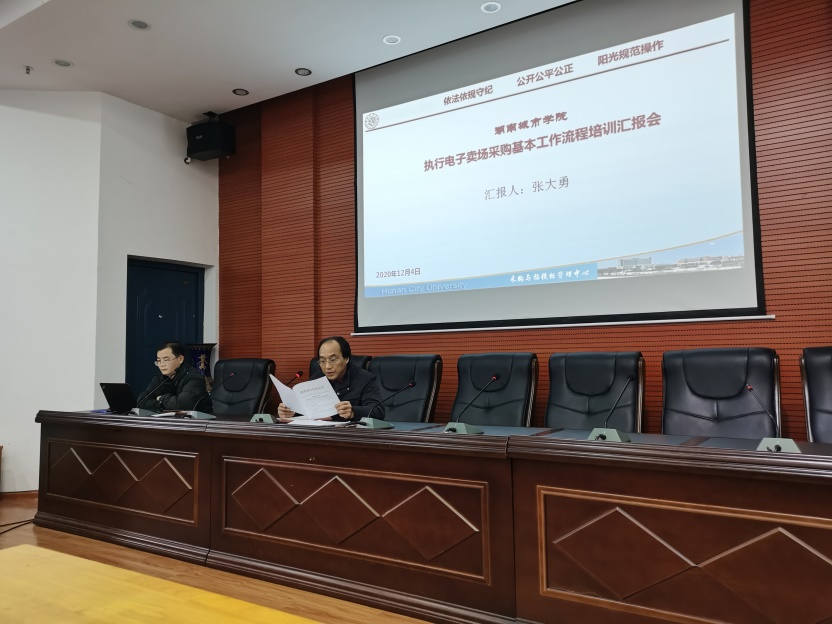 2020年12月04日15:00时,在土木楼828学术报告厅,采购与招投标管理中心主持召开“学校执行电子卖场采购工作流程操作”培训会。采购与招投标管理中心主任冷云飞组织学习了《米兰平台关于执行政府采购电子卖场的有关规定》(湘城院发[2020]66号)及相关要求和注意事项。培训会上,张大勇介绍了政府采购电子卖场的具体操作流程,王胜斌负责发放了全校各采购经办人和审核人岗位账号密码及负责会务事宜。